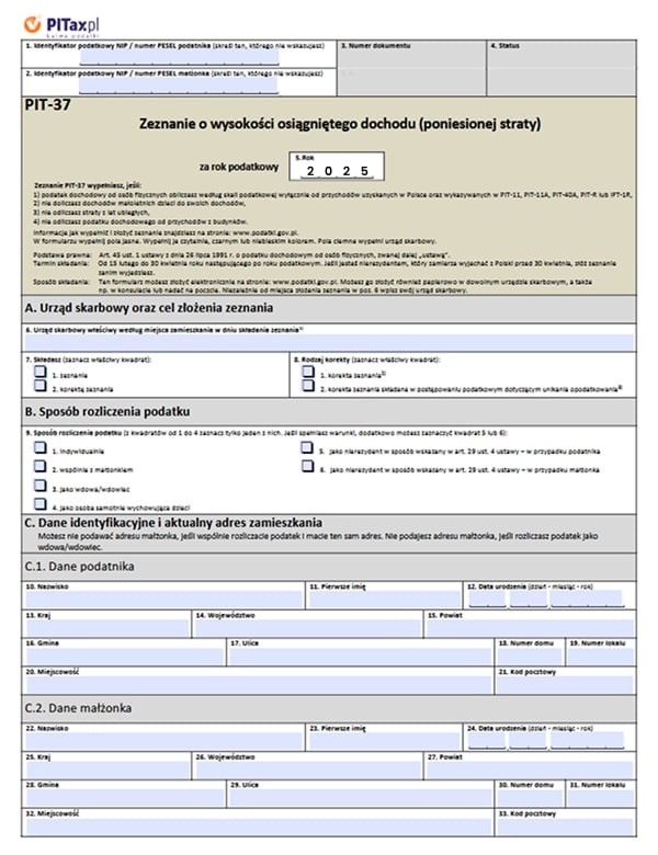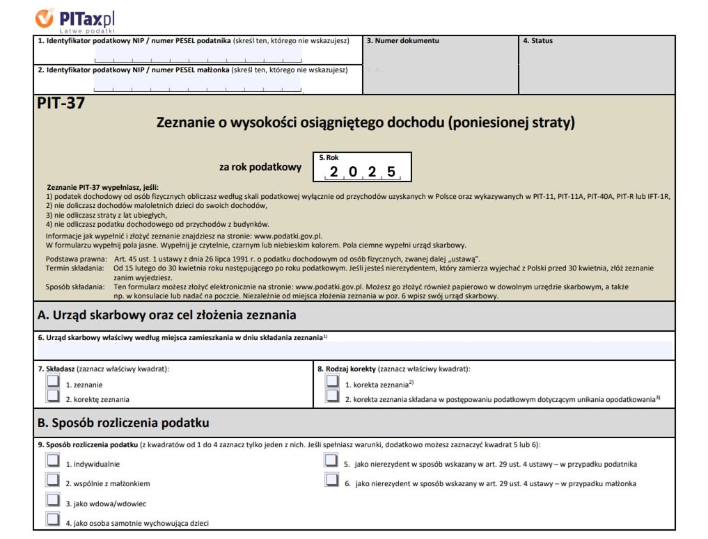 Informację na temat sposobu opodatkowania, rozliczający deklaruje na swoim standardowym formularzu PIT w zależności od uzyskiwanych dochodów, czyli np. PIT-37 czy PIT-36.